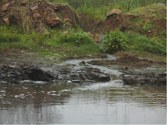 湖區(qū)北側(cè)補(bǔ)水口為湖區(qū)主要污染源,污水主要由上游魚塘水、周圍建筑工地生活污水、路面、山坡、土坡等自然雨水匯集。水中含有較多的油污、水色黑灰、水體渾濁、水質(zhì)為劣五類。