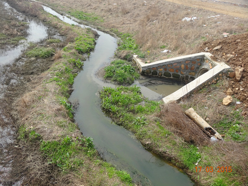 1號橋處污水口水量較小,主要為上游養(yǎng)豬場、居民生活污水、苗木山地雨水自然匯水。