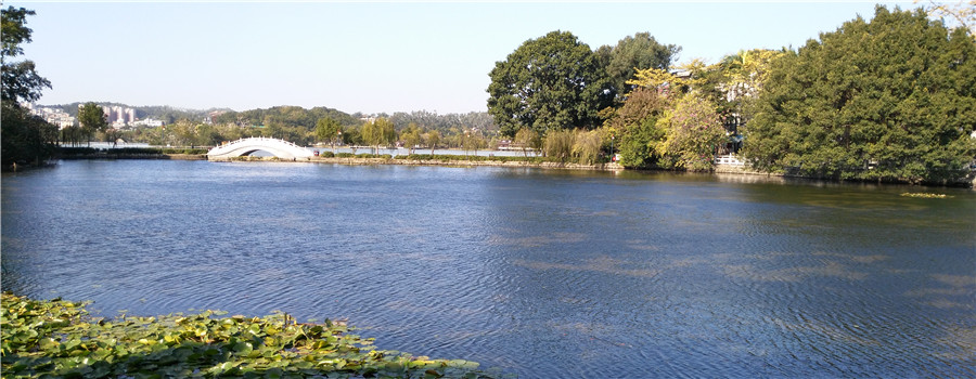 南南湖水面約12萬平方米,水深1.6 m 至2.2 m 之間。由于葉綠素和懸浮物濃度高,南湖水色常年為黃綠色,透明度低,感觀很差。屬劣V類水質(zhì)。