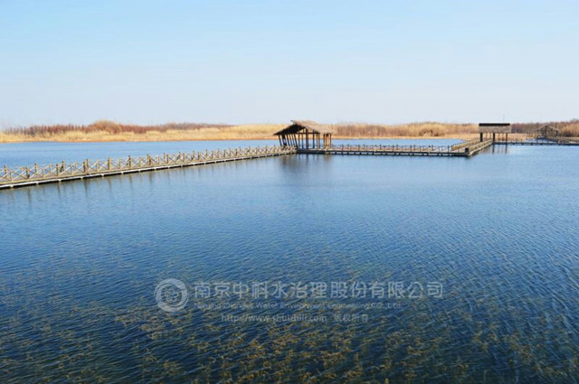 溱湖國家濕地公園內(nèi)的溱湖風景區(qū)是國家5A級旅游景區(qū)和經(jīng)江蘇省人民政府批準的省級風景名勝區(qū),是由國家林業(yè)局批準設(shè)立的全國第二家、江蘇省首家國家級濕地公園。溱湖生態(tài)構(gòu)建示范區(qū)水面面積約8萬㎡,平均水深1.5m,生態(tài)構(gòu)建之前水體透明度僅為25cm。我司通過人工干預(yù),打破水體濁水穩(wěn)定態(tài),水生植被覆蓋率70%左右,水體平均透明度達到1.5m,清澈見底,形成穩(wěn)定的良性生態(tài)系統(tǒng)。竣工至今,生態(tài)系統(tǒng)一直保持穩(wěn)定,水質(zhì)指標達到《地表水環(huán)境質(zhì)量標準》(GB3838-2002)Ⅰ類水標準。