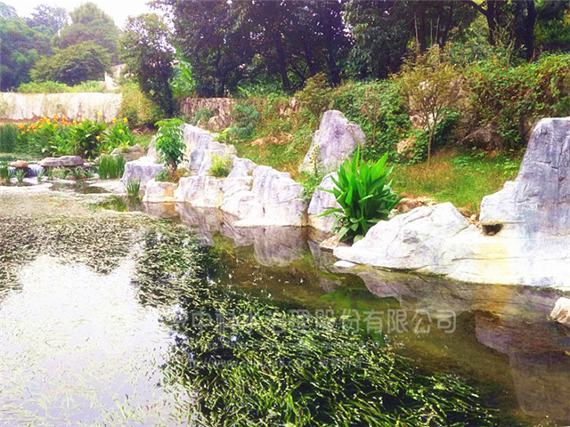 金鐘河生態(tài)濕地不僅滿足了凈化污水的需求,在構建同時還結合了園林綠化工藝,設置了假山、灌木、人行步道等景觀設施,儼然呈現(xiàn)出一個生態(tài)公園的景象。