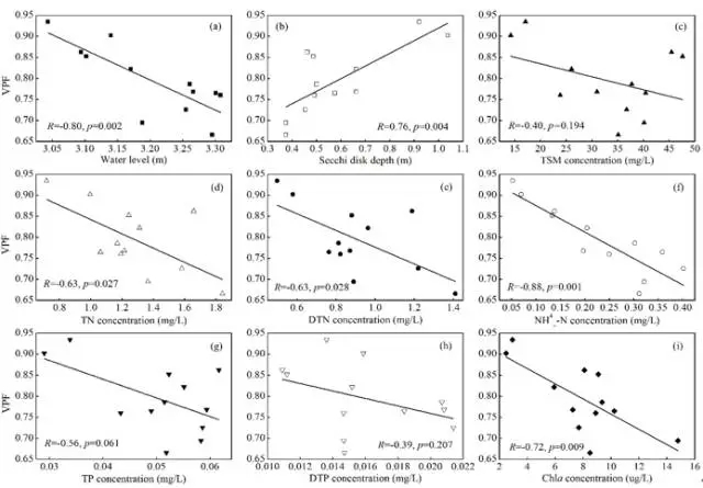 論文首先基于1998-2014年東太湖水環境參數長期定位觀測數據發現,東太湖生境呈現氮磷營養鹽、懸浮物和藻類水生物顯著增加,透明度顯著下降,湖泊長期處于高水位運行,湖泊生境條件越來越不利于水生植物生長。2003-2014 MODIS 影像揭示的水生植被出現頻次逐漸降低,水生植被低頻次水域也在逐漸擴大,水生植被和生態系統呈現快速退化趨勢。統計分析和分類回歸樹模型揭示,在總氮、總磷、溶解性總氮、溶解性總磷、氨態氮、葉綠素a、懸浮物、透明度、水位等生境因子中,氨態氮濃度(反映富營養化水平)、透明度與水位比值(反映水下光照強度)對水生植被出現頻次的解釋率高達60.1%,是決定東太湖水生植被消退的決定性因子。因此,減少營養鹽特別氨態氮輸入,在水生植物萌發的春季降低湖泊水位都可以有效地促進水生植物發育和生長,以上研究結果可以用于指導我國受損湖泊生態系統進行以水生植物重建為主導的湖泊生態修復。